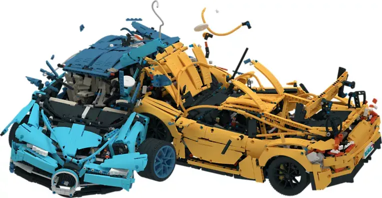 Crash simulation of two toy automobiles performed in Ansys LS-DYNA.