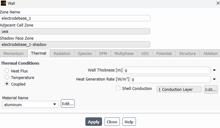 Face Zone – Boundary Conditions: Coupled heat transfer wall boundary conditions are applied at solid-solid interfaces. Shell conduction could be activated to account for thin coatings, if needed.