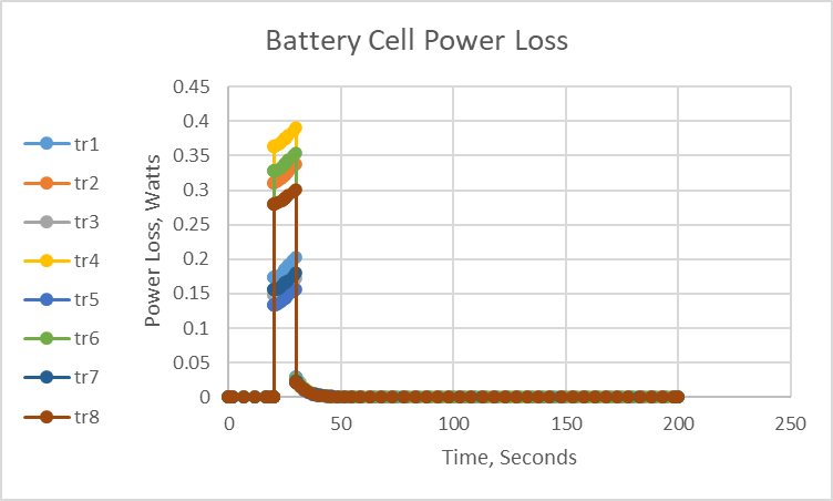 The Twin Builder simulations each took less than 2 seconds to solve. The engineer can quickly determine the thermal heat loss for a battery cell from the HPPC data.