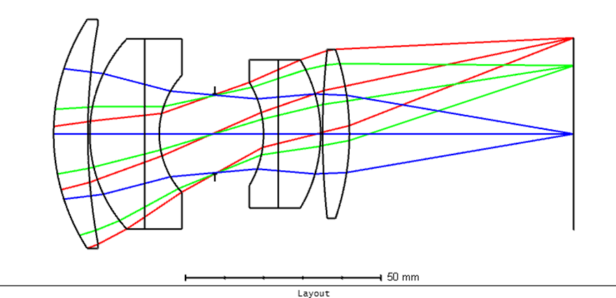 Here we use a Double Gauss with 28-degree field lens as an example in Zemax installation folder. The lens structure is shown below: