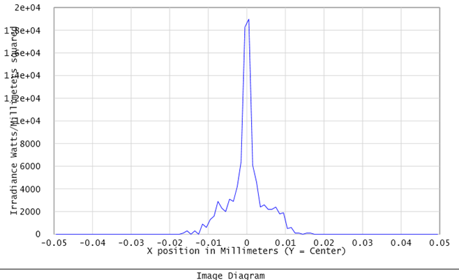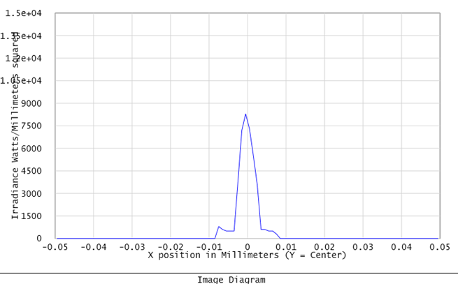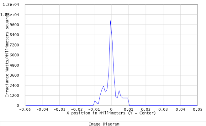 If Cross Section at “Show” is selected, the X or Y cross-section of intensity along the center row is shown below: