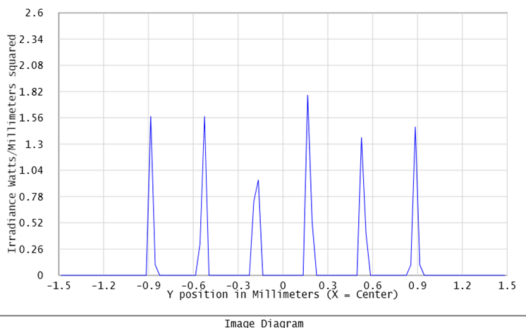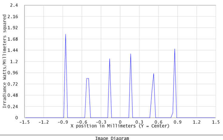 In summary, Geometric Image Analysis provides a quick tool in Zemax sequential mode to illustrate presence at image plane, with overall defined field, aperture and wavelength. Compared to nonsequential mode, it provides limited source shape in “File” tab but provides quick overall light distribution show without converting to nonsequential mode.